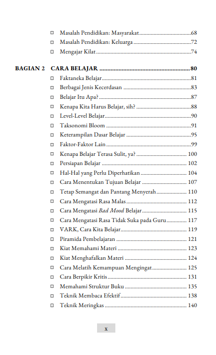 Lewat bahasa yang ringan namun sarat makna, Anda akan dipandu untuk: (1) Memahami secara mendalam sistem pendidikan negara; (2) Menemukan dan memilih cara belajar terbaik yang sesuai dengan diri Anda sendiri; serta (3) Membuka wawasan ke berbagai cabang ilmu pengetahuan dan tokoh-tokoh besar yang menginspirasi.