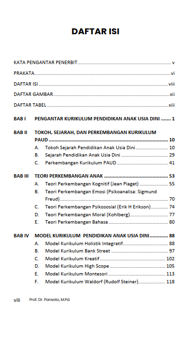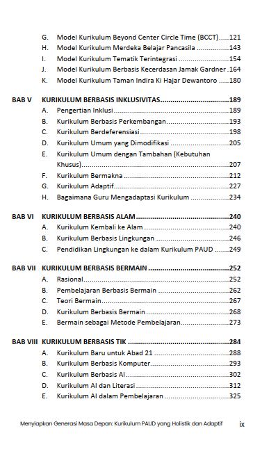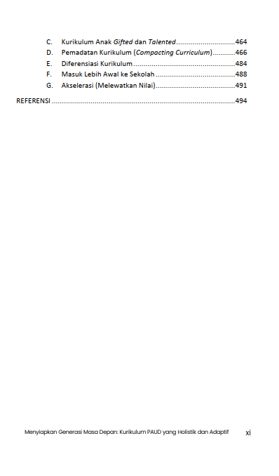 Berikut Daftar Isi Buku Pendidikan yang berjudul Buku Menyiapkan Generasi Masa Depan: Kurikulum PAUD yang Holistik dan Adaptif, diantaranya:
