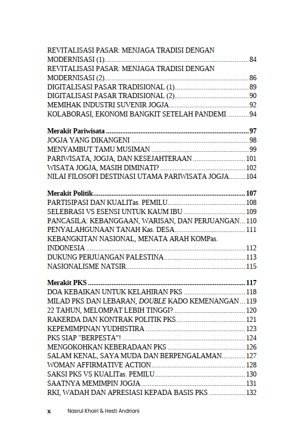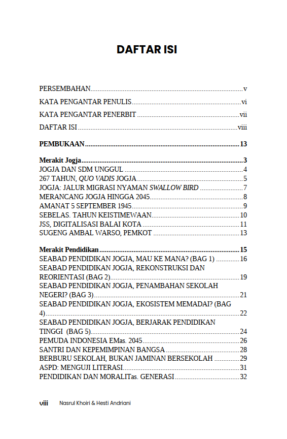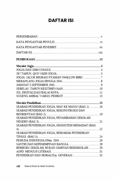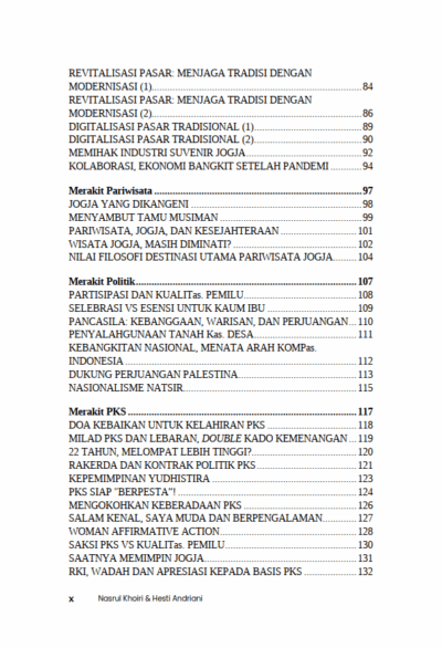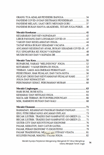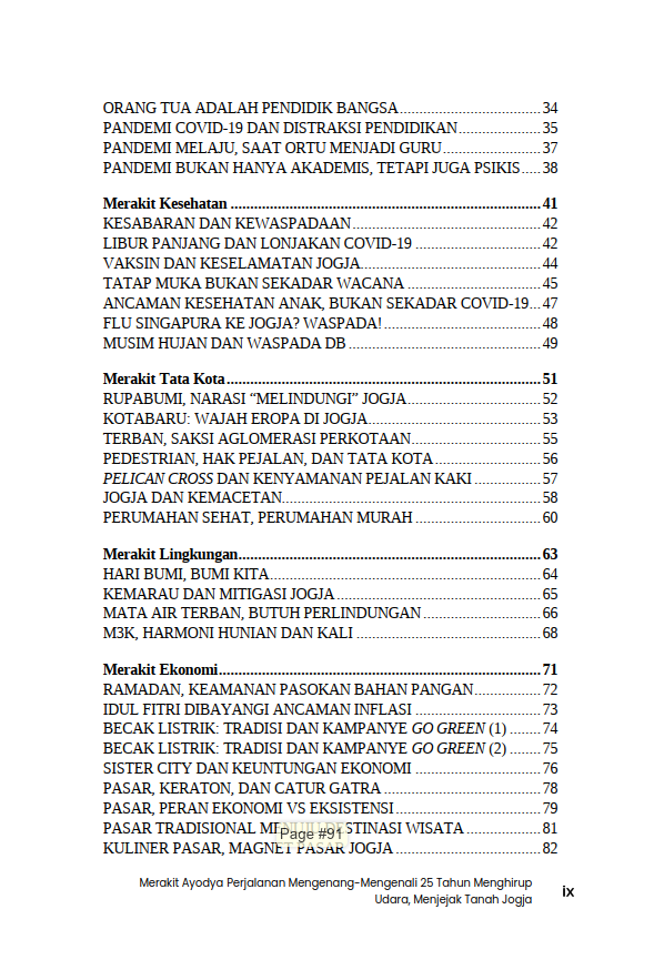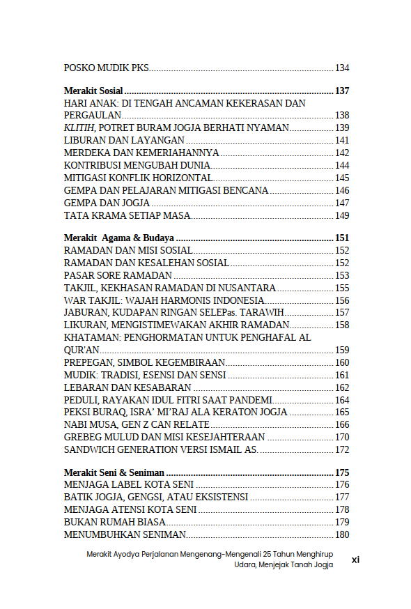 Berikut Daftar Isi Buku Pariwisata yang berjudul Buku Merakit Ayodya Perjalanan Mengenang-Mengenali 25 Tahun Menghirup Udara, Menjejak Tanah Jogja, diantaranya:
