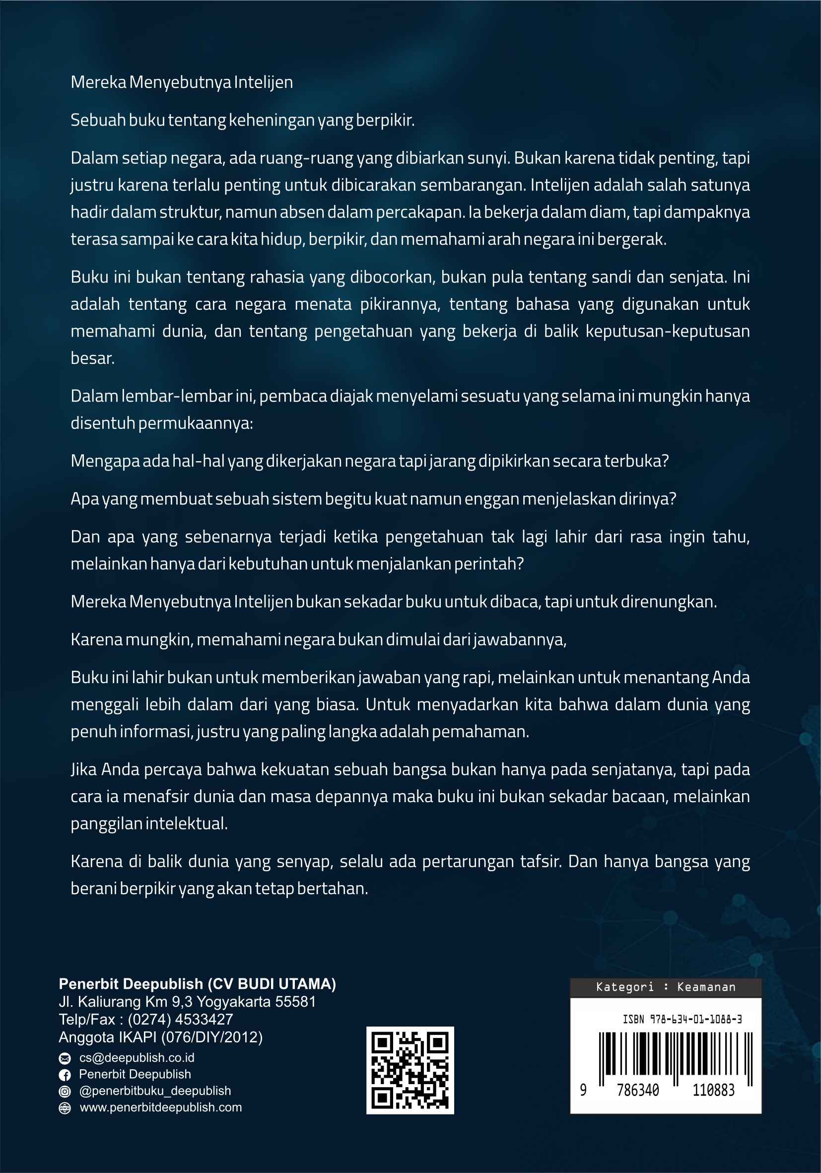 Buku Mereka Menyebutnya Intelijen: Tafsir, Kuasa, dan Jalan Sunyi Pengetahuan Strategis di Indonesia diterbitkan oleh Penerbit Buku Pendidikan Deepublish.
