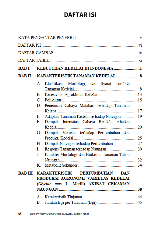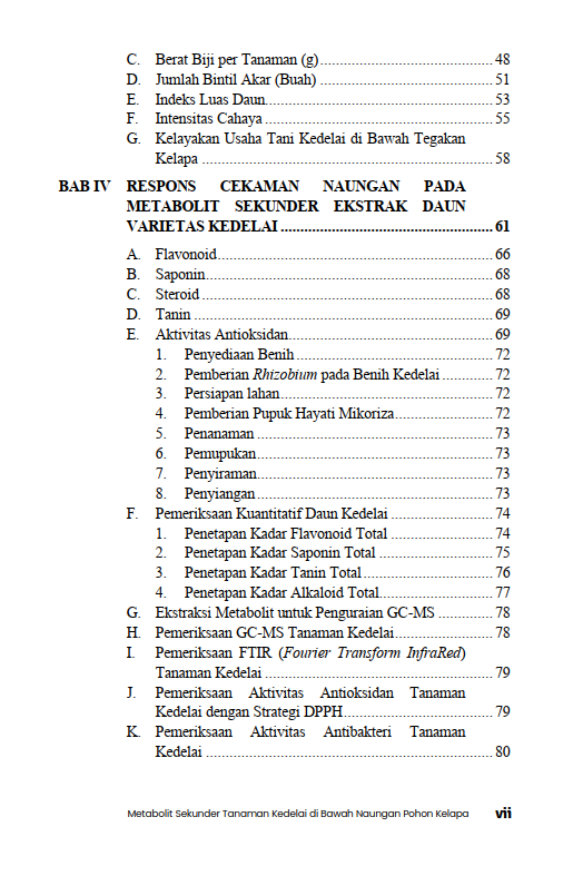 Berikut Daftar Isi Buku Pertanian yang berjudul Buku Metabolit Sekunder Tanaman Kedelai di Bawah Naungan Pohon Kelapa, diantaranya: