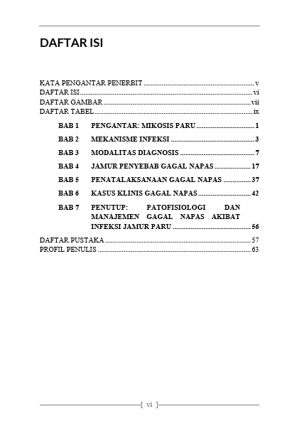 Berikut Daftar Isi Buku Kesehatan berjudul Buku Mikosis Paru Ancaman Kegawatdaruratan Napas, diantaranya: