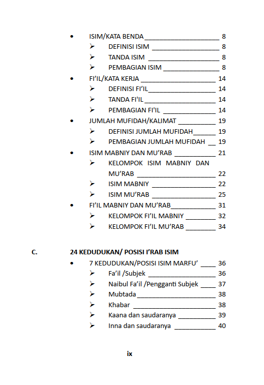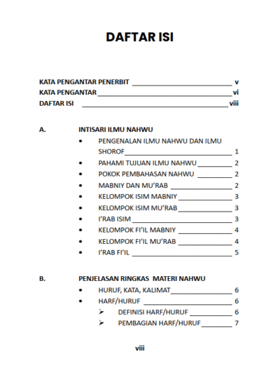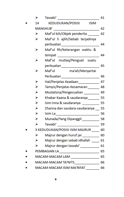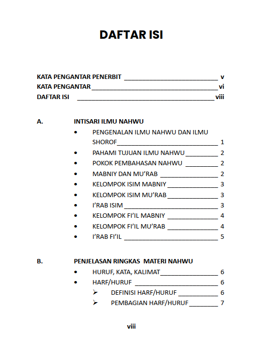Berikut Daftar Isi Buku Agama Islam yang berjudul Buku Mindmap Belajar Nahwu: Praktis Menguasai Dasar-Dasar Tata Bahasa Arab, diantaranya: