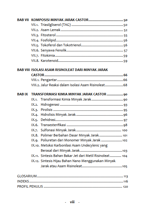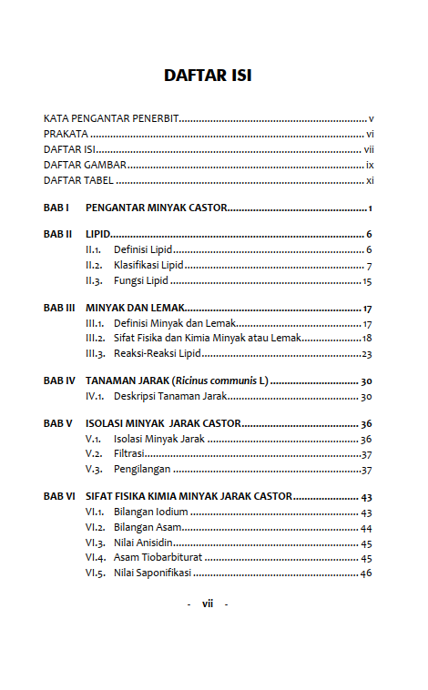 Berikut Daftar Isi Buku Sains dan Teknologi yang berjudul Buku Minyak Castor, diantaranya: