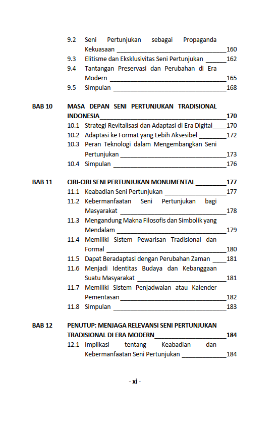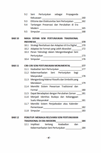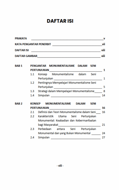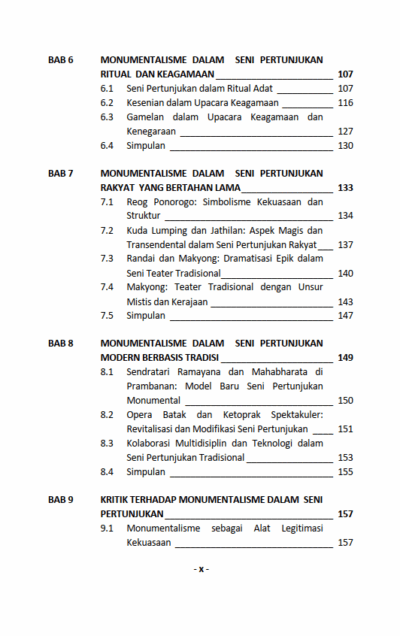 Berikut Daftar Isi Buku Seni yang berjudul Buku Monumentalisme dalam Seni Pertunjukan Tradisional di Indonesia, diantaranya: