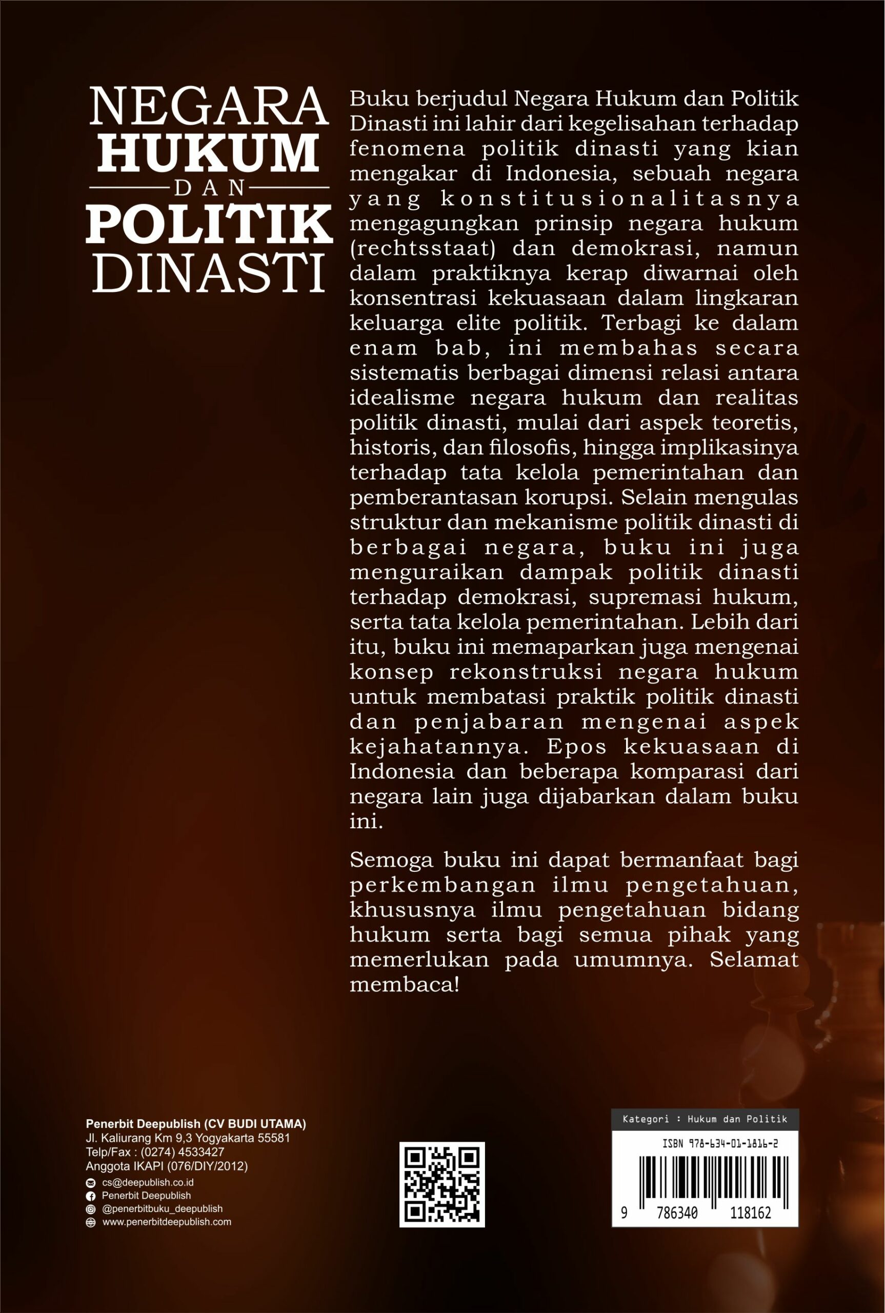Buku Negara Hukum dan Politik Dinasti diterbitkan oleh Penerbit Buku Pendidikan Deepublish.