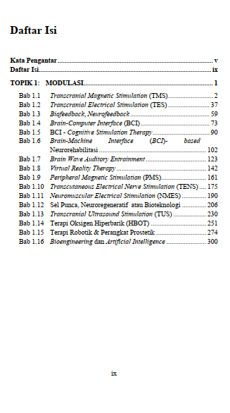 Berikut Daftar Isi Buku Kedokteran yang berjudul Buku Neurorestoration and Neuroengineering: Modulation, Biotech and Emerging Technologies, diantaranya: