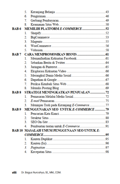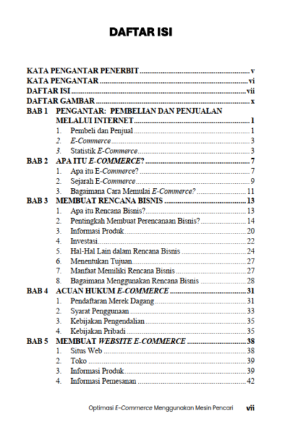 Berikut Daftar Isi Buku Ekonomi berjudul Buku Optimisasi E-Commerce Menggunakan Mesin Pencari, diantaranya: