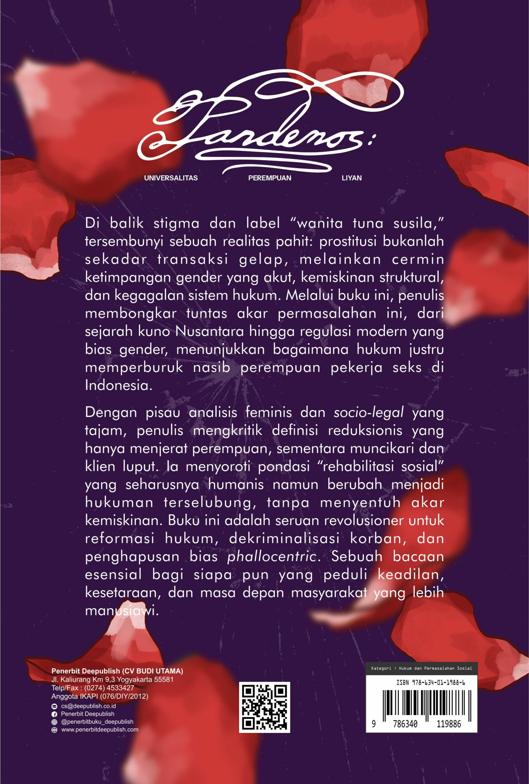 Buku Hukum yang berjudul Buku Pandemos: Universalitas Perempuan Liyan merupakan karya Priscilla Yovia. Di balik stigma dan label “wanita tuna susila,” tersembunyi sebuah realitas pahit: prostitusi bukanlah sekadar transaksi gelap, melainkan cermin ketimpangan gender yang akut, kemiskinan struktural, dan kegagalan sistem hukum. Melalui buku ini, penulis membongkar tuntas akar permasalahan ini, dari sejarah kuno Nusantara hingga regulasi modern yang bias gender, menunjukkan bagaimana hukum justru memperburuk nasib perempuan pekerja seks di Indonesia.