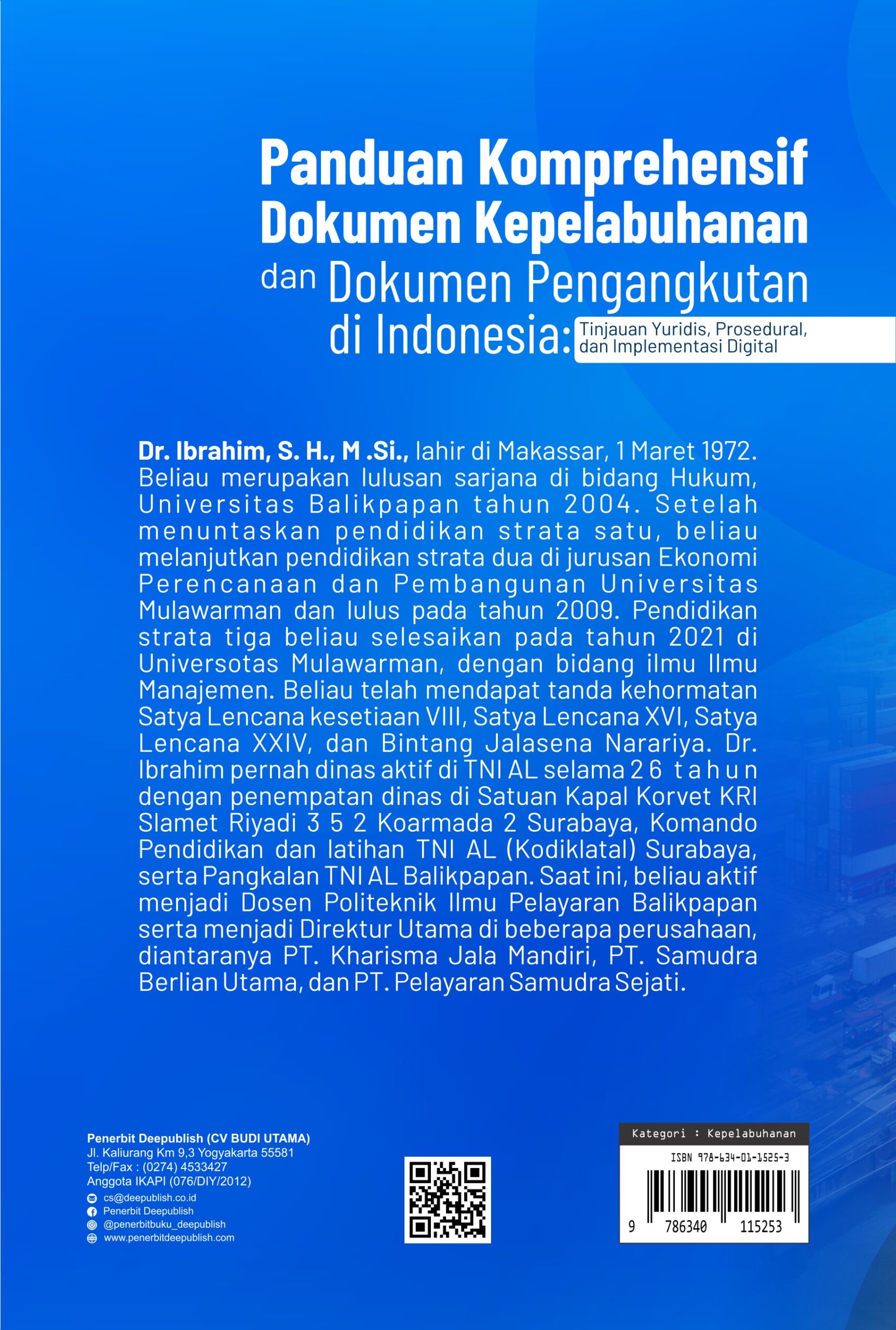 Buku Panduan Komprehensif Dokumen Kepelabuhanan dan Dokumen Pengangkutan di Indonesia: Tinjauan Yuridis, Prosedural, dan Implementasi Digital diterbitkan oleh Penerbit Buku Pendidikan Deepublish.