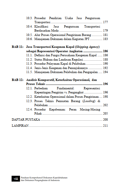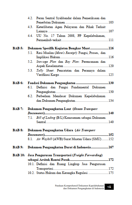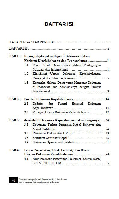 Berikut Daftar Isi Buku Hukum yang berjudul Buku Panduan Komprehensif Dokumen Kepelabuhanan dan Dokumen Pengangkutan di Indonesia: Tinjauan Yuridis, Prosedural, dan Implementasi Digital, diantaranya: