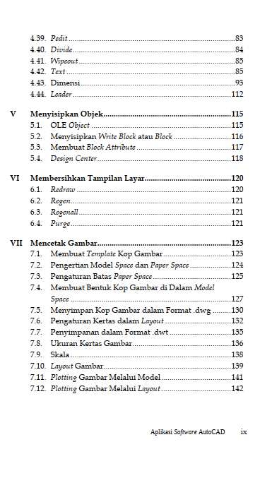 Materi buku ini terdapat pembahasan mendalam mengenai alur kerja profesional, khususnya penggunaan model space dan paper space, serta strategi plotting gambar yang tepat sesuai skala yang diinginkan. Dapatkan juga bonus pengetahuan tentang kustomisasi AutoCAD menggunakan autolips dan pembuatan workspace classic.