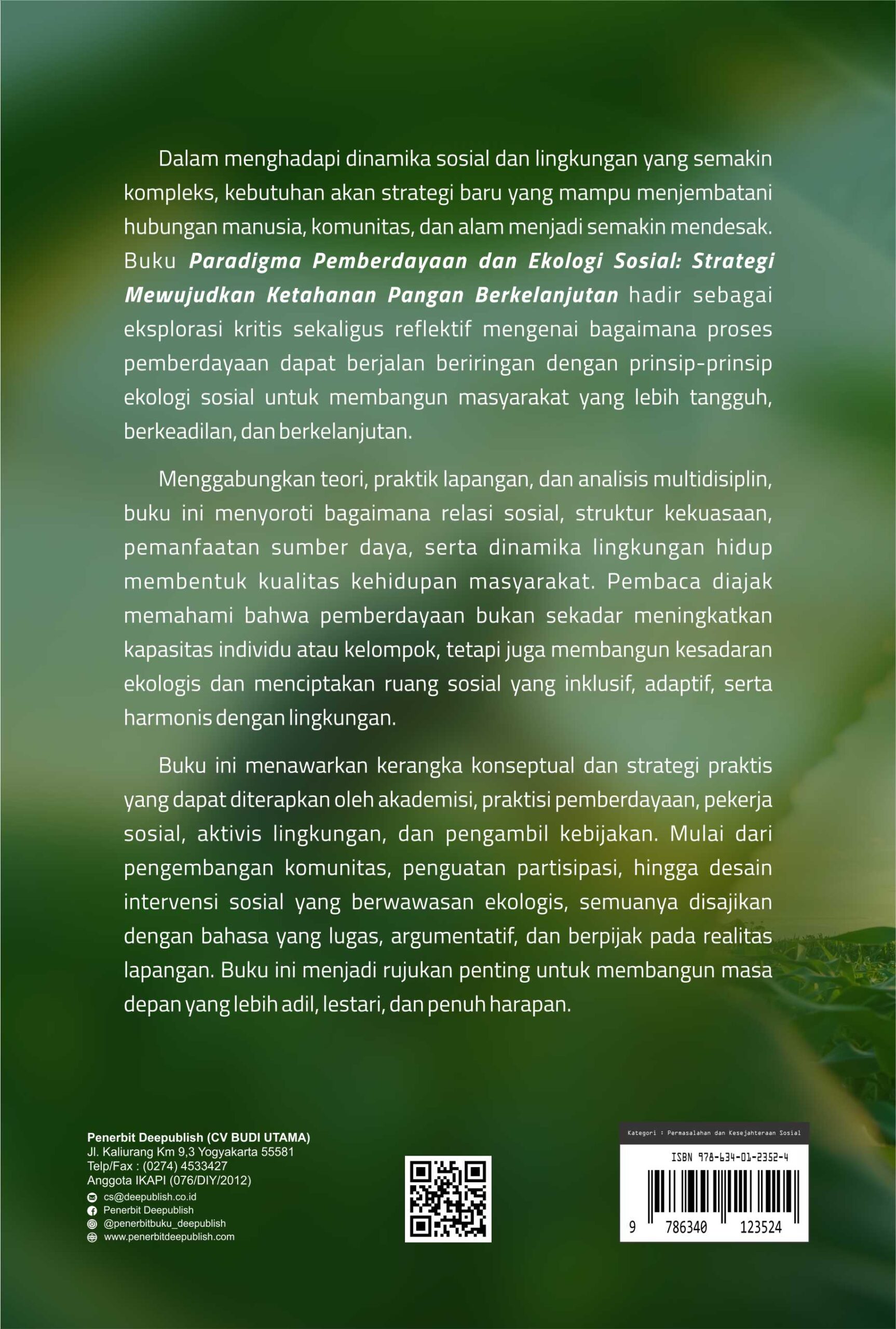 Buku Paradigma Pemberdayaan dan Ekologi Sosial: Strategi Mewujudkan Ketahanan Pangan Berkelanjutan diterbitkan oleh Penerbit Buku Pendidikan Deepublish.