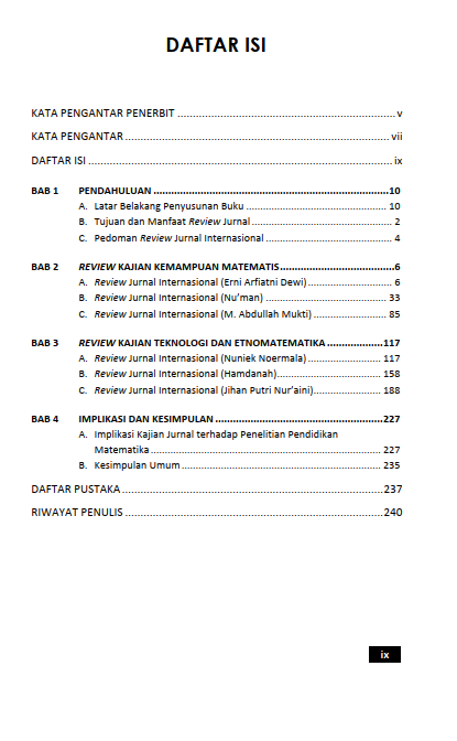 Berikut Daftar Isi Buku Pendidikan yang berjudul Buku Buku Paspor Pemikiran: Jejak Nalar Mahasiswa Pendidikan Matematika dalam Perspektif Global, diantaranya: