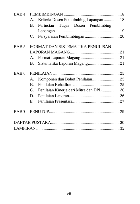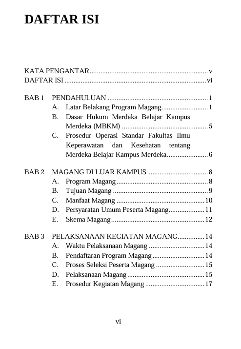 Berikut Daftar Isi Buku Pendidikan yang berjudul Buku Pedoman Magang Mahasiswa di Luar Kampus, diantaranya: