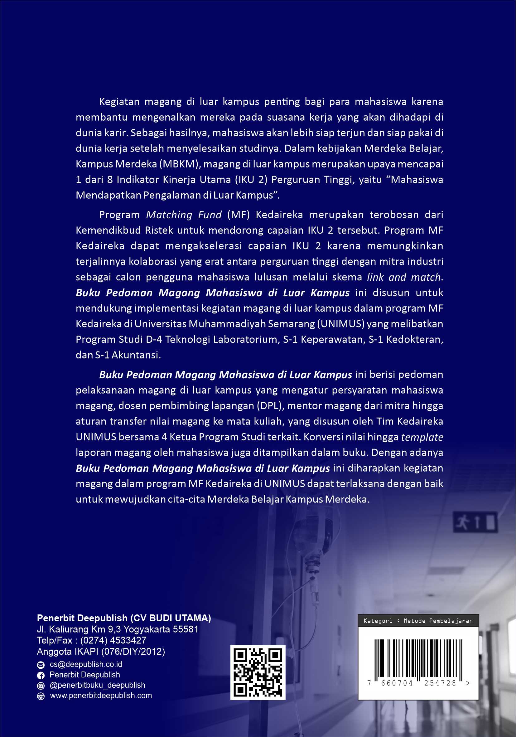 Buku Pedoman Magang Mahasiswa di Luar Kampus diterbitkan oleh Penerbit Buku Pendidikan Deepublish.