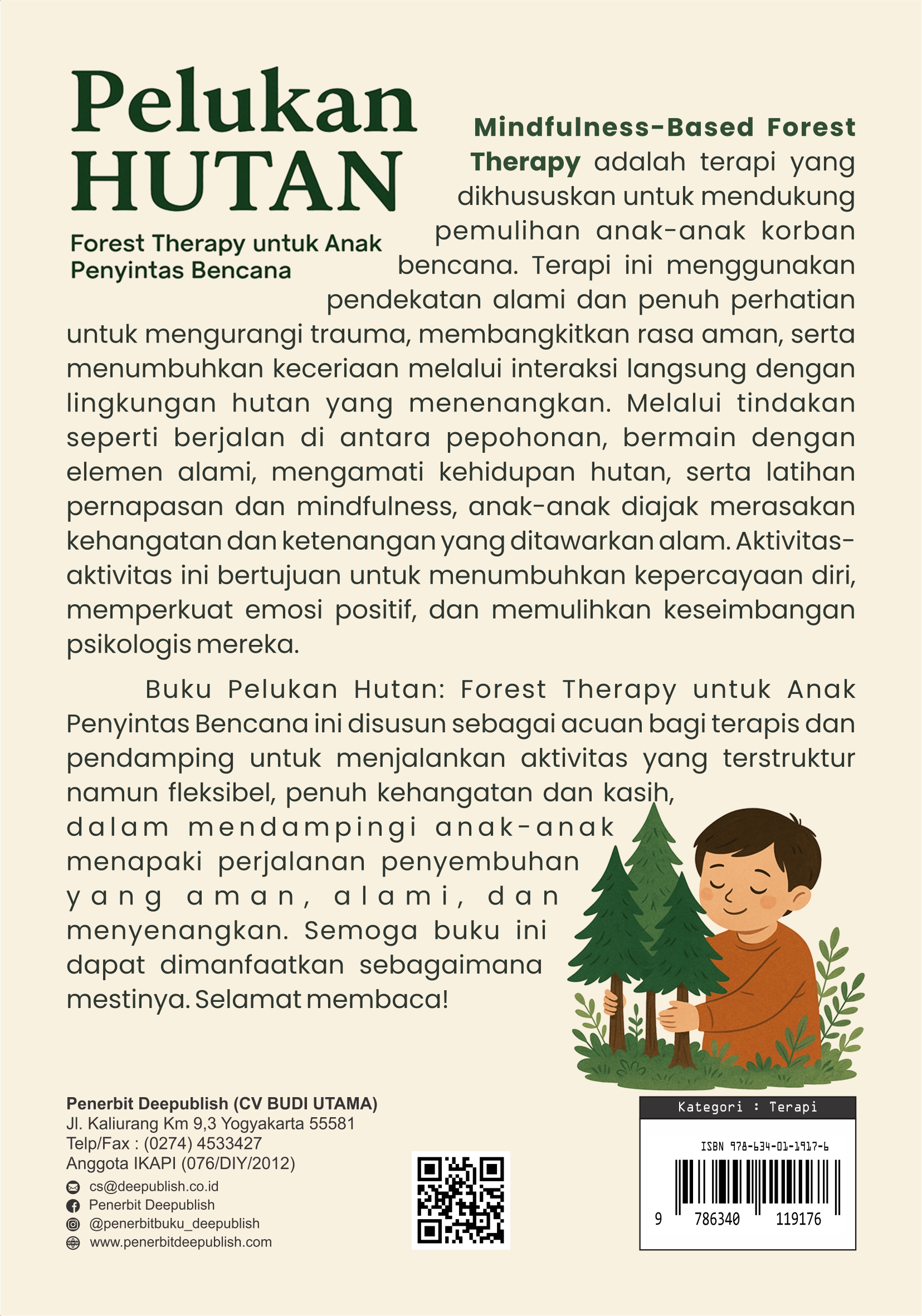 Buku Pelukan Hutan Forest Therapy untuk Anak Penyintas Bencana diterbitkan oleh Penerbit Buku Pendidikan Deepublish.