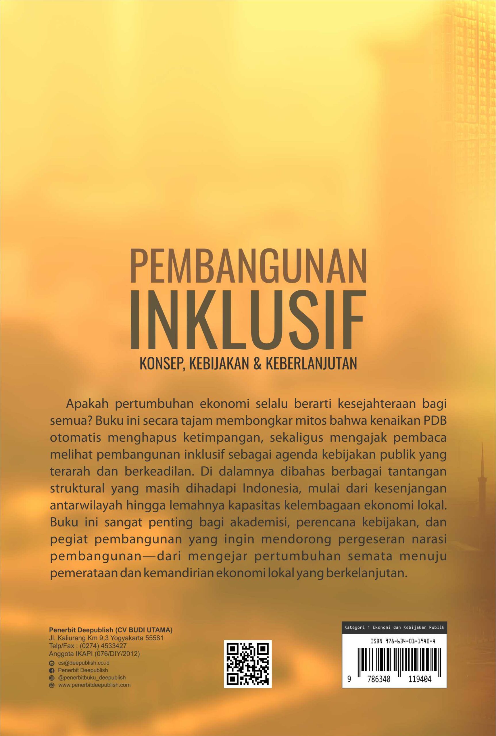 Buku Pembangunan Inklusif Konsep, Kebijakan & Keberlanjutan diterbitkan oleh Penerbit Buku Pendidikan Deepublish.