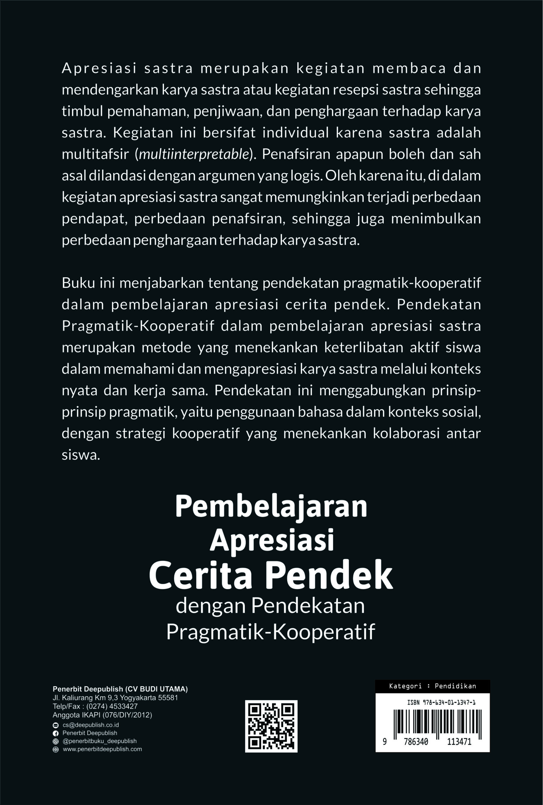 Buku Pembelajaran Apresiasi Cerita Pendek dengan Pendekatan Pragmatik-Kooperatif diterbitkan oleh Penerbit Buku Pendidikan Deepublish.