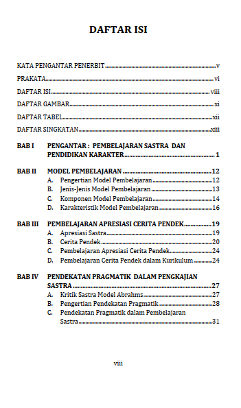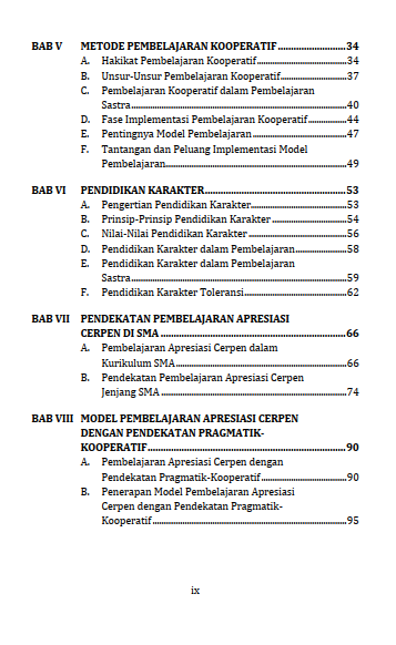 Berikut Daftar Isi Buku Sastra yang berjudul Buku Pembelajaran Apresiasi Cerita Pendek dengan Pendekatan Pragmatik-Kooperatif, diantaranya: