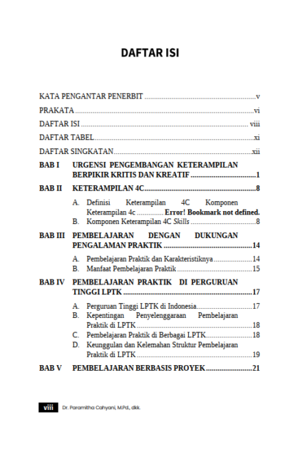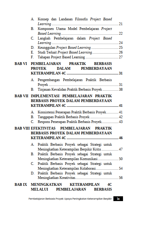 Berikut Daftar Isi Buku Keguruan dan Ilmu Pendidikan yang berjudul Buku Pembelajaran Berbasis Proyek : Upaya Peningkatan Keterampilan Berpikir, diantaranya: