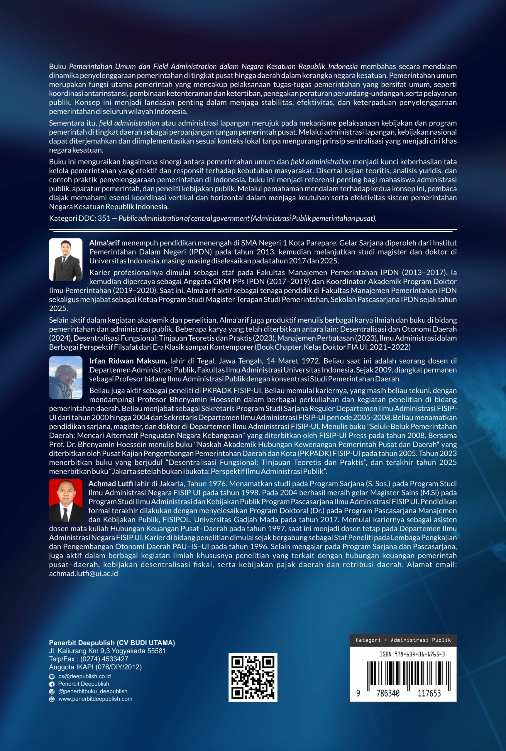 Buku Pemerintahan Umum dan Field Administration dalam Negara Kesatuan Republik Indonesia diterbitkan oleh Penerbit Buku Pendidikan Deepublish.