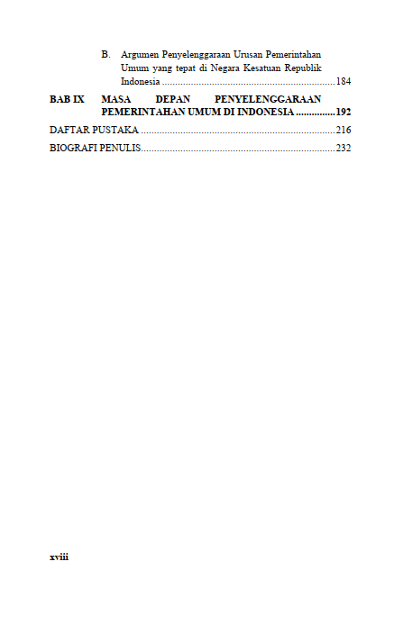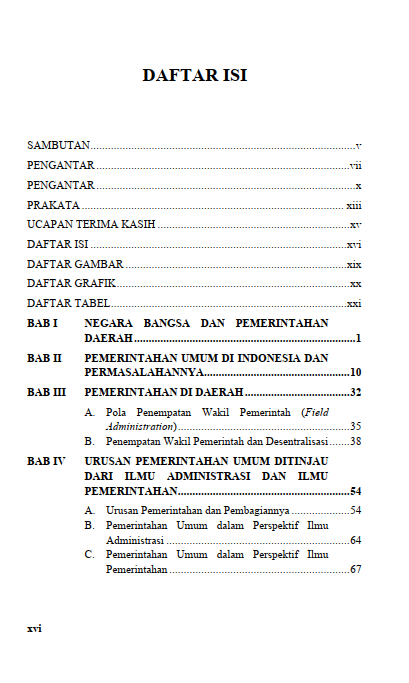 Berikut Daftar Isi Buku Administrasi Negara yang berjudul Buku Pemerintahan Umum dan Field Administration dalam Negara Kesatuan Republik Indonesia, diantaranya: