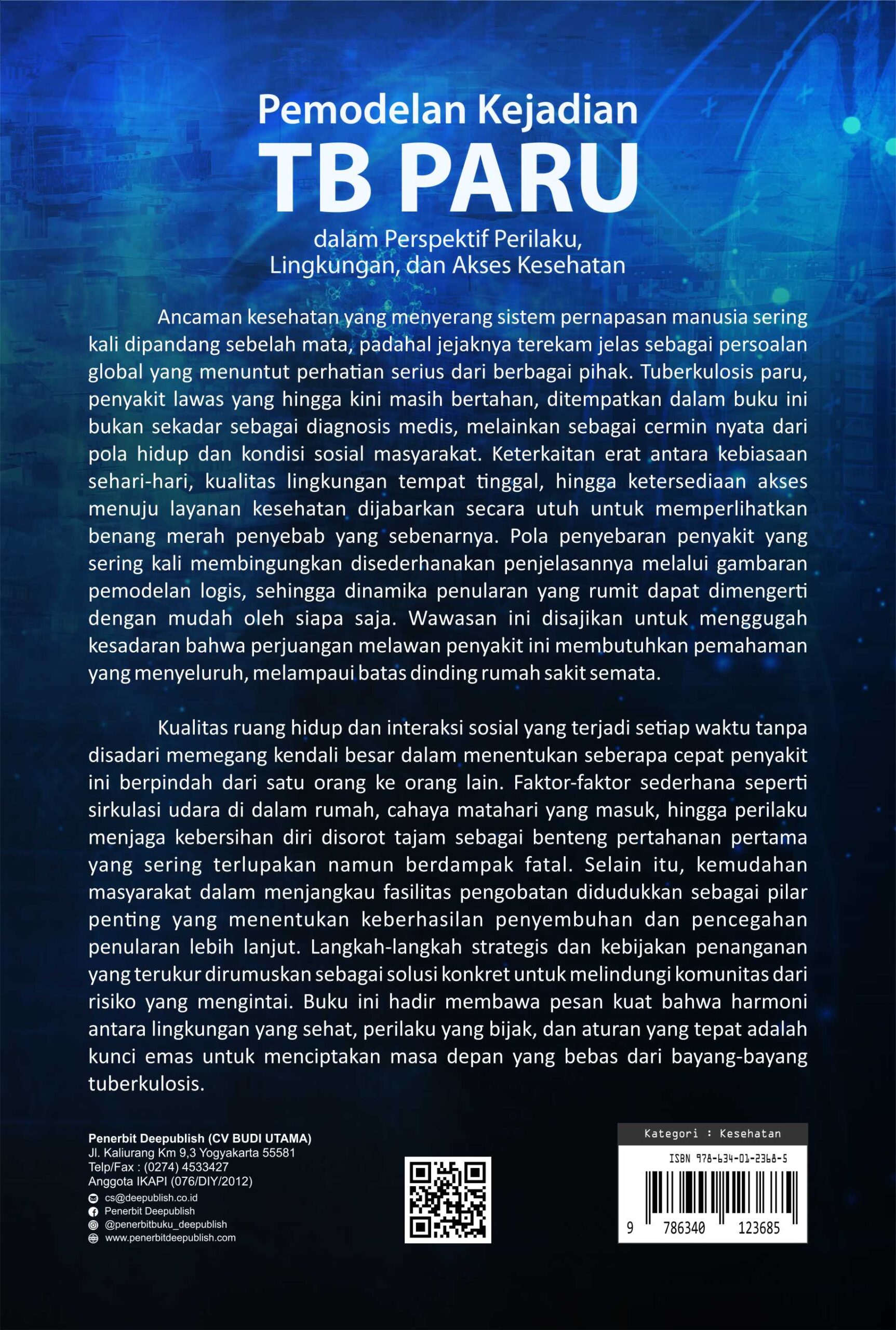 Buku Pemodelan Kejadian TB Paru dalam Perspektif Perilaku, Lingkungan, dan Akses Kesehatan diterbitkan oleh Penerbit Buku Pendidikan Deepublish.