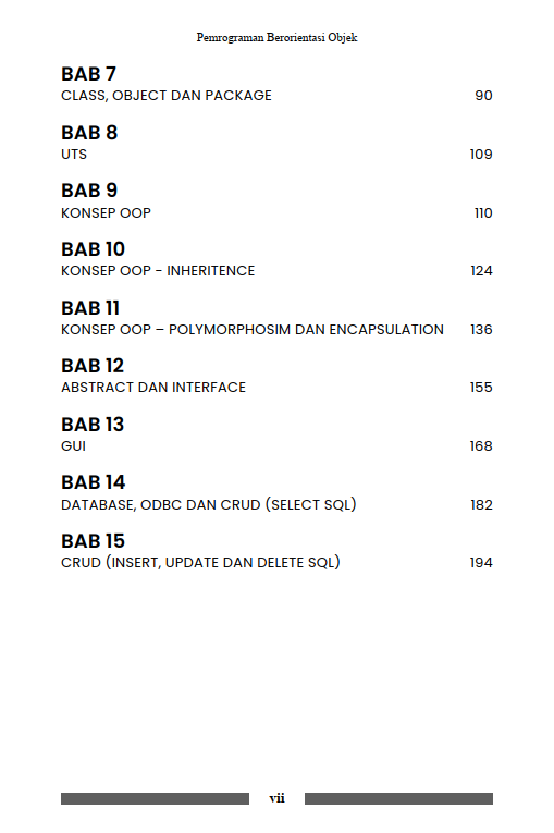Berikut Daftar Isi Buku Ilmu Komputer yang berjudul Buku Pemrograman Berorientasi Objek, diantaranya:
