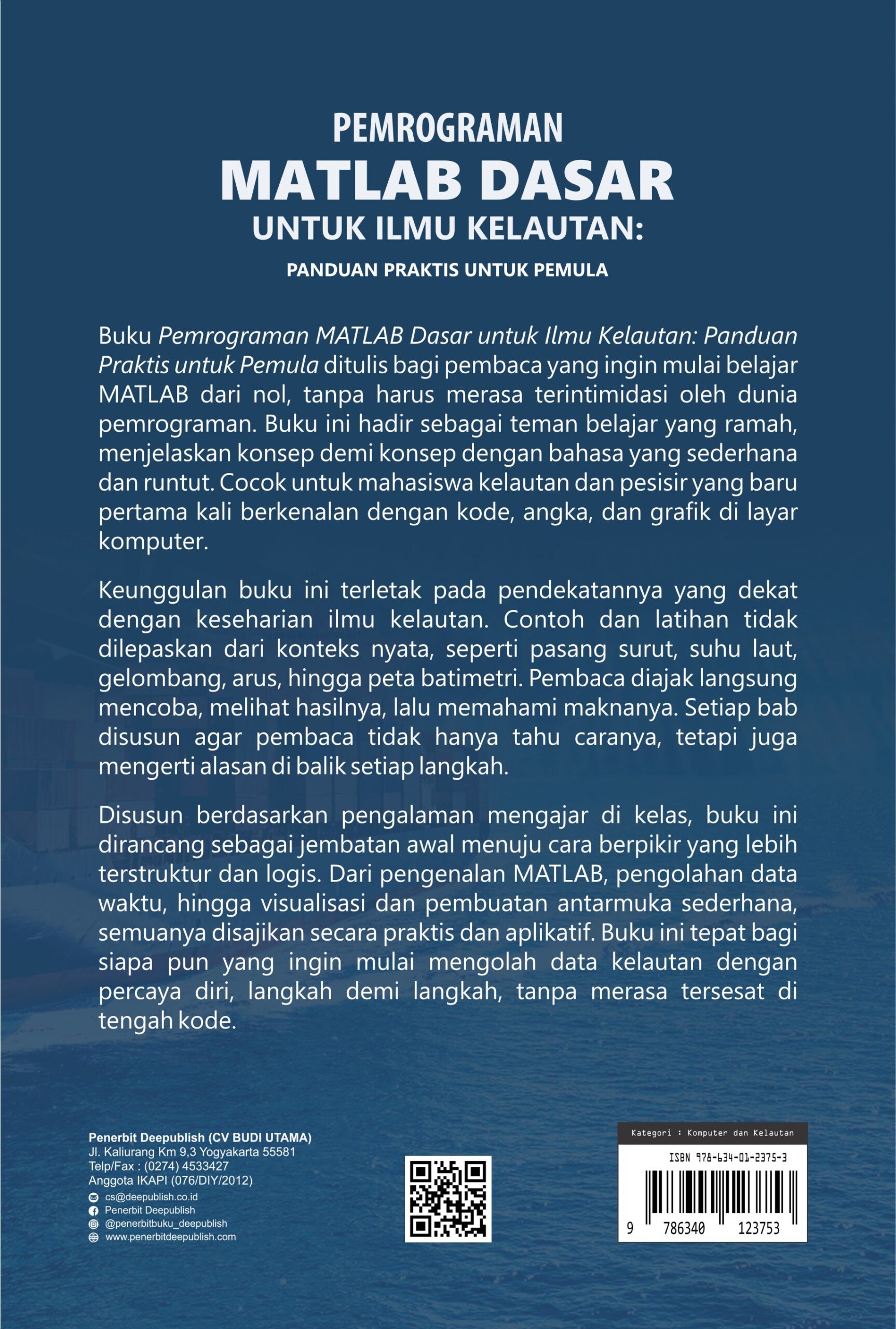 Buku Pemrograman MATLAB Dasar untuk Ilmu Kelautan: Panduan Praktis untuk Pemula diterbitkan oleh Penerbit Buku Pendidikan Deepublish.