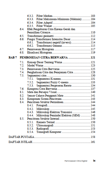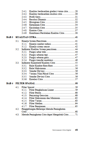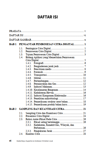 Berikut Daftar Isi Buku Fisika yang berjudul Buku Pemrosesan Citra Digital, diantaranya: