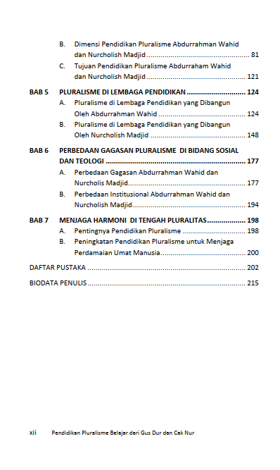 Buku ini tidak sekadar menyajikan teori, tetapi merupakan rujukan reflektif yang mengupas tuntas pentingnya pendidikan pluralisme untuk menanamkan paham kesetaraan, sikap moderat dalam beragama, dan penghormatan terhadap nilai-nilai kemanusiaan. Pendidikan pluralisme hadir untuk mengajak manusia saling mengenal, menghargai perbedaan, dan bekerja sama membangun kesatuan bangsa. Buku ini dapat menjadi peta jalan menuju kerukunan di tengah keberagaman.