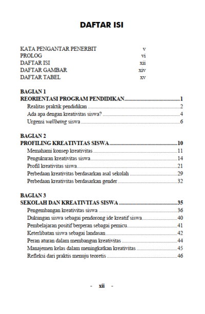 Berikut Daftar Isi Buku Psikologi Pendidikan berjudul Buku Pendidikan Positif Menggali Kreativitas, Menggapai Bahagia, diantaranya: