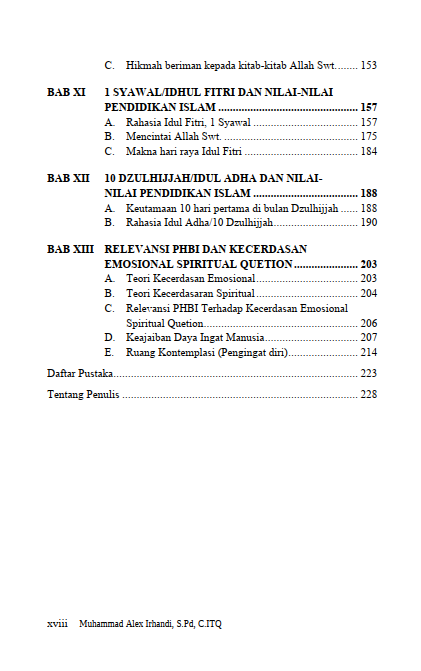 Buku ini menghadirkan telaah mendalam tentang perjalanan, tantangan, dan peluang pendidikan Islam di era modern. Dalam pandangan Islam, menuntut ilmu merupakan bagian dari ibadah. Ibadah di sini dimaknai sebagai wujud penyerahan diri sepenuhnya kepada Allah dengan menjalankan segala perintah-Nya dan menjauhi segala larangan-Nya. Buku ini mengajak pembaca untuk merenungkan kembali landasan filosofis, visi, dan tujuan pendidikan Islam, sembari menawarkan strategi sinergis antara nilai-nilai keislaman, perkembangan ilmu pengetahuan, dan kebutuhan masyarakat kontemporer.