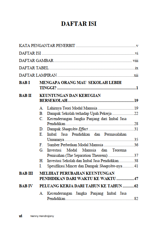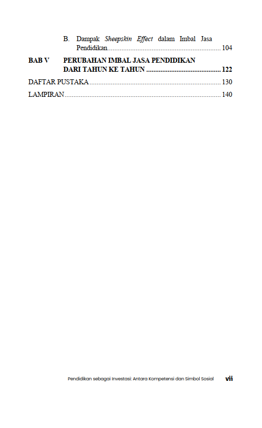 Berikut Daftar Isi Buku Pendidikan sebagai Investasi: Antara Kompetensi dan Simbol Sosial, diantaranya:
