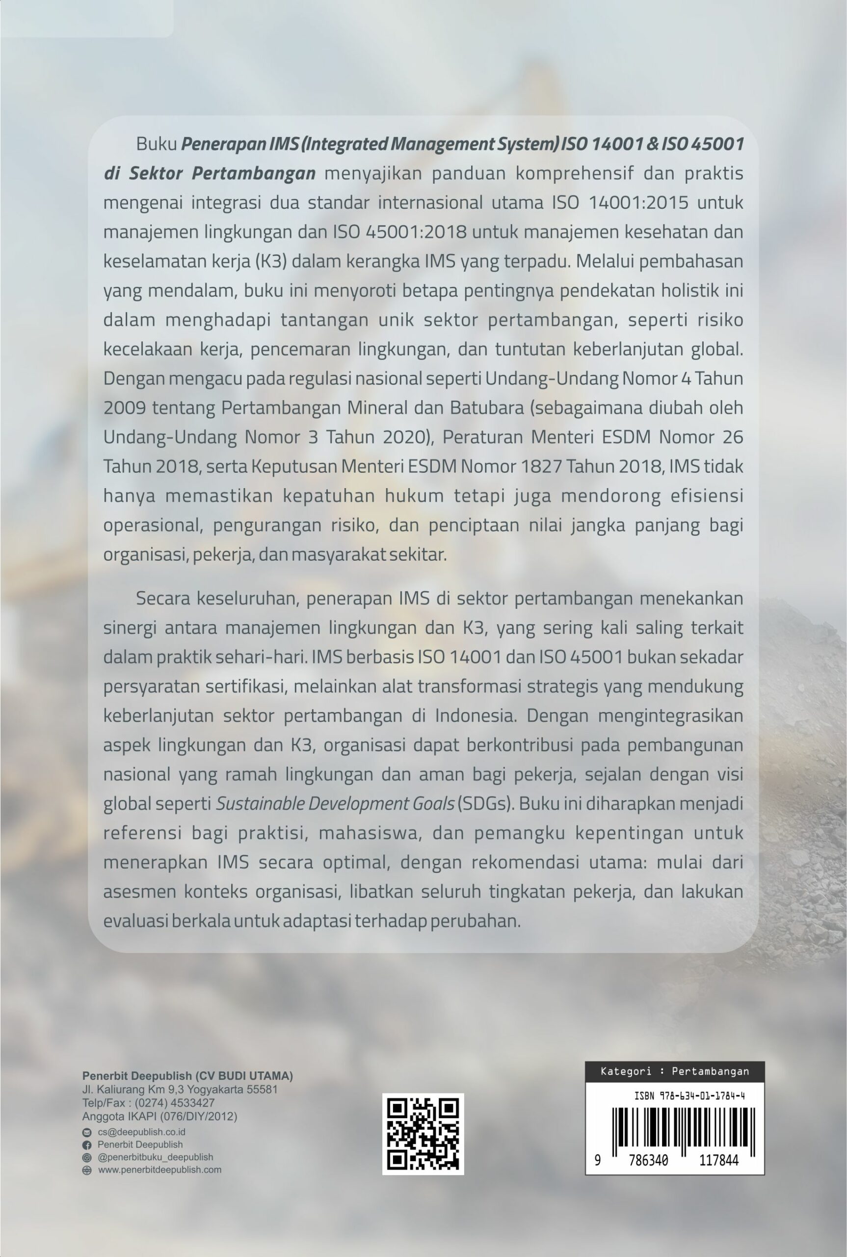 Buku Penerapan IMS (Integrated Management System) ISO 14001 & ISO 45001 di Sektor Pertambangan diterbitkan oleh Penerbit Buku Pendidikan Deepublish.