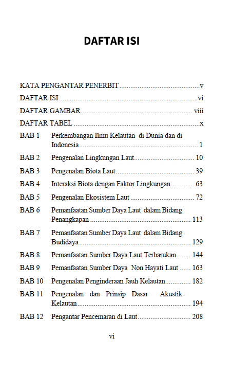 Berikut Daftar Isi Buku Perikanan dan Kelautan yang berjudul Buku Pengantar Ilmu Kelautan, diantaranya: