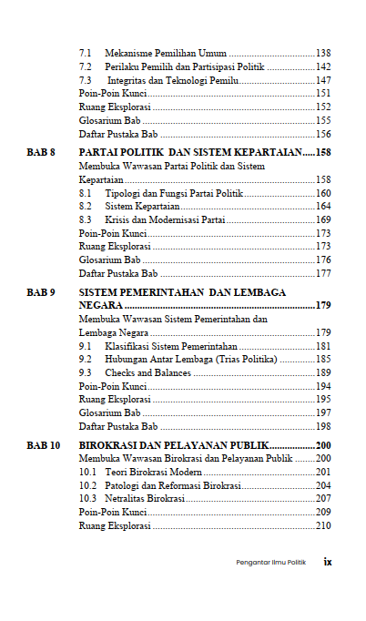 Buku ini sangat cocok digunakan oleh mahasiswa, dosen, maupun masyarakat umum yang memiliki minat terhadap isu-isu politik. Dengan bahasa yang komunikatif dan isi yang berbobot, Pengantar Ilmu Politik menjadi pintu masuk yang ideal untuk menjelajahi dunia politik yang kompleks namun menarik. Melalui buku ini, pembaca diharapkan tidak hanya memahami konsep, tetapi juga mampu berpikir kritis dalam menanggapi berbagai fenomena politik yang berkembang di tingkat lokal, nasional, maupun global.