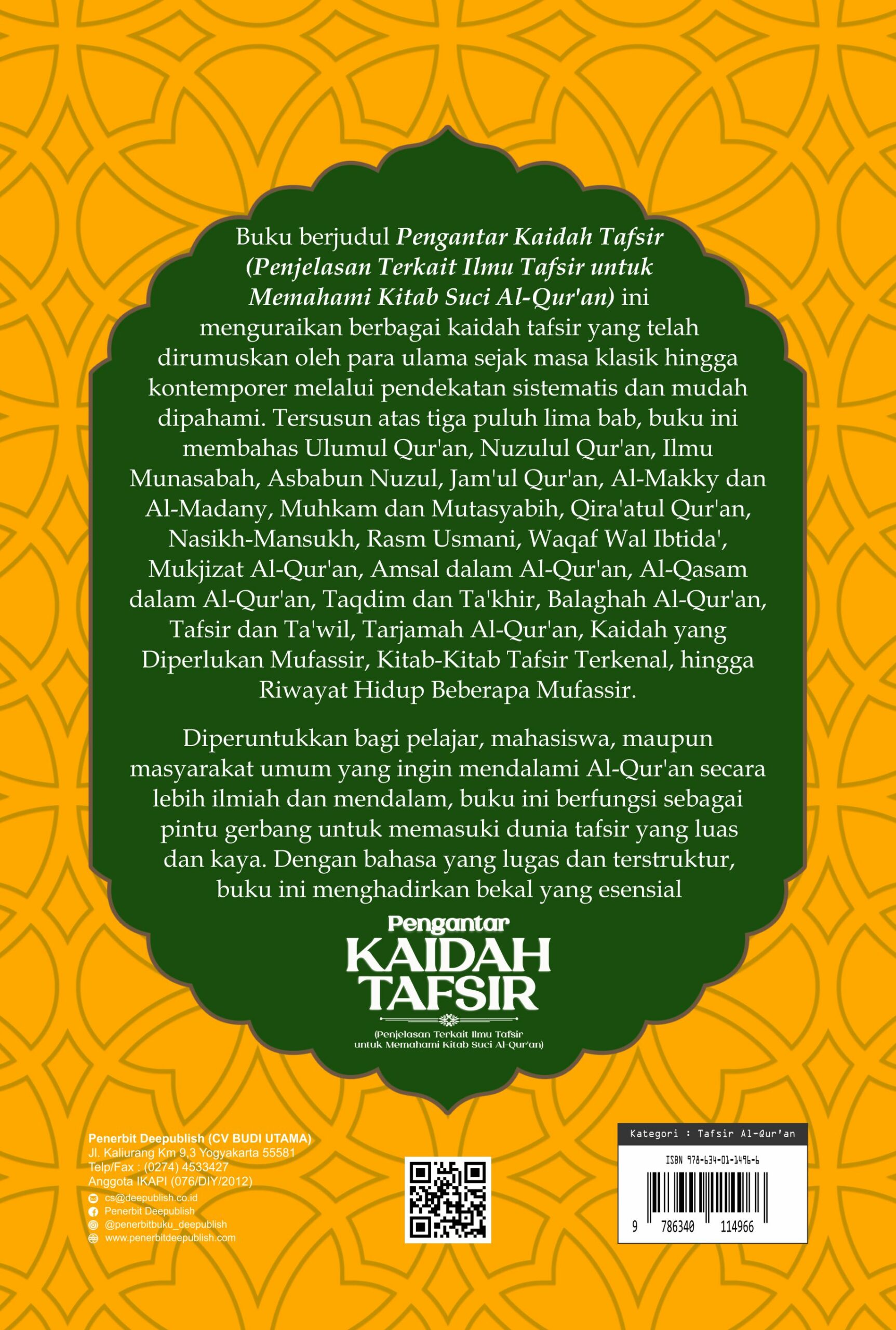 Buku Pengantar Kaidah Tafsir (Penjelasan Terkait Ilmu Tafsir Untuk Memahami Kitab Suci Al-Qur’an) diterbitkan oleh Penerbit Buku Pendidikan Deepublish.