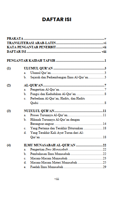 Berikut Daftar Isi Buku Agama Islam yang berjudul Buku Pengantar Kaidah Tafsir (Penjelasan Terkait Ilmu Tafsir Untuk Memahami Kitab Suci Al-Qur’an), diantaranya: