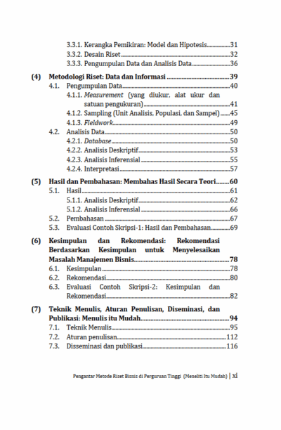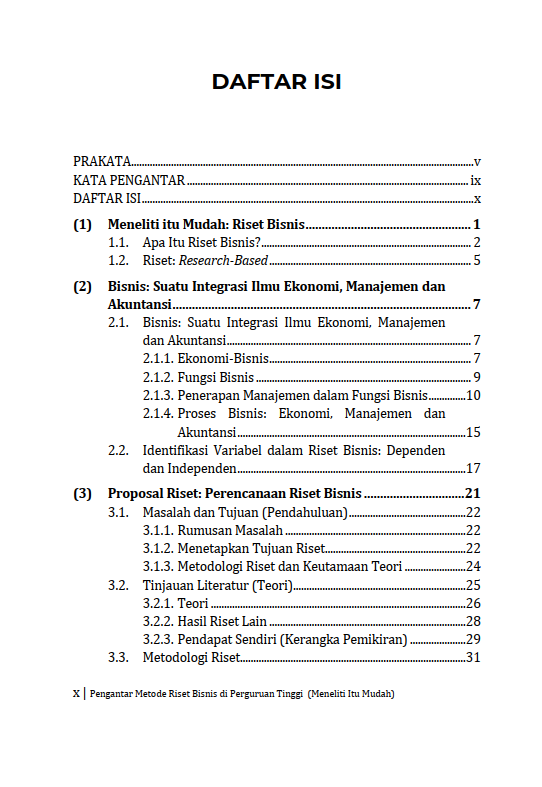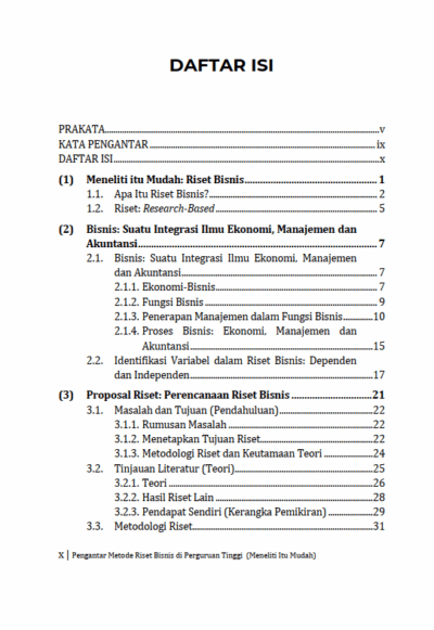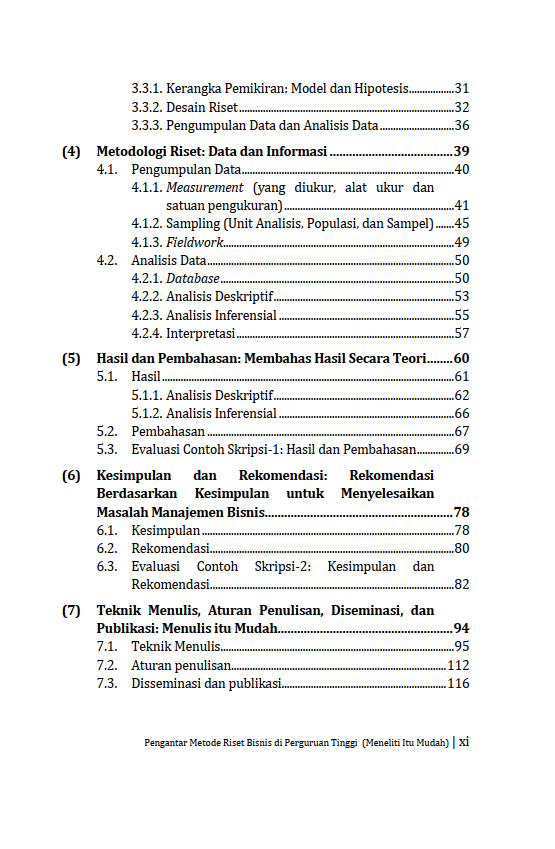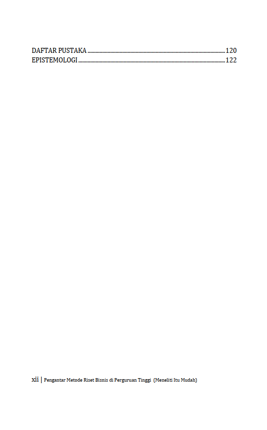 Berikut Daftar Isi Buku Metodologi Penelitian yang berjudul Buku Pengantar Metode Riset Bisnis di Perguruan Tinggi (Meneliti itu Mudah), diantaranya: