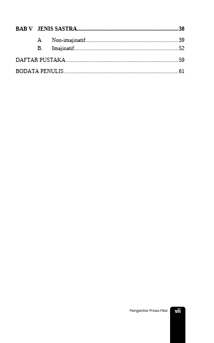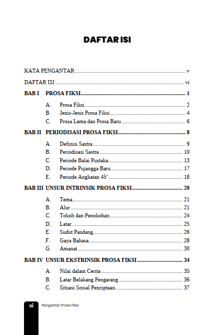 Berikut Daftar Isi Buku Sastra yang berjudul Buku Pengantar Prosa Fiksi, diantaranya: