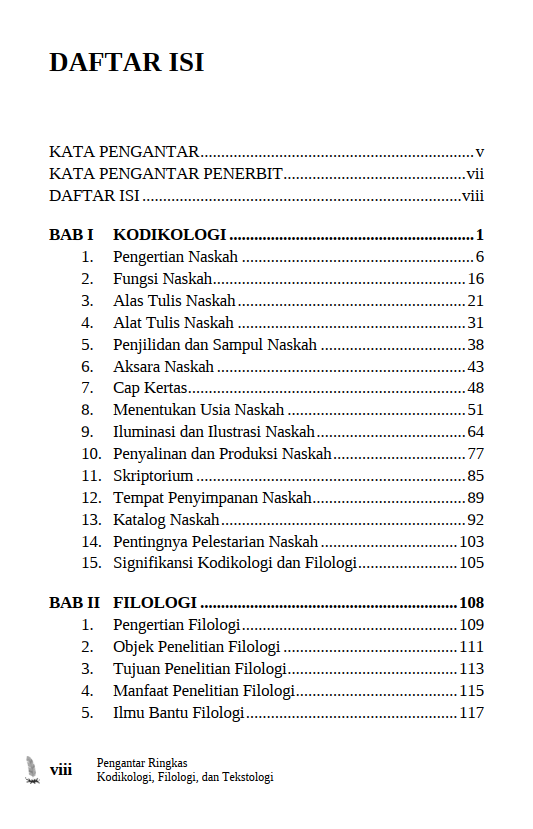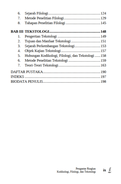 Berikut Daftar Isi Buku Bahasa dan Sastra yang berjudul Buku Pengantar Ringkas Kodikologi Filologi dan Tekstologi, diantaranya: