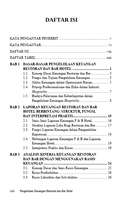 Buku Pengelolaan Keuangan Restoran dan Bar Hotel: Dari Food & Beverage Cost Hingga Strategi Keuangan dan Budaya Bisnis Berkelanjutan
