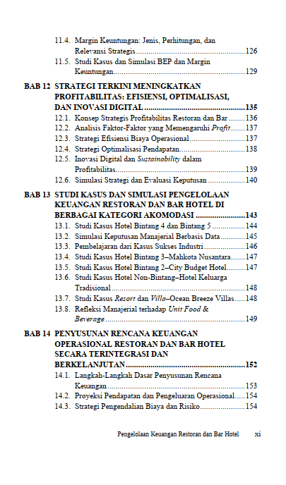 Dirancang untuk mahasiswa vokasi, dosen, dan praktisi industri F&B hotel, buku ini juga dapat menjadi referensi lintas disiplin bagi mahasiswa pariwisata, akuntansi, serta profesional yang ingin memperdalam aspek finansial dalam dunia hospitality.