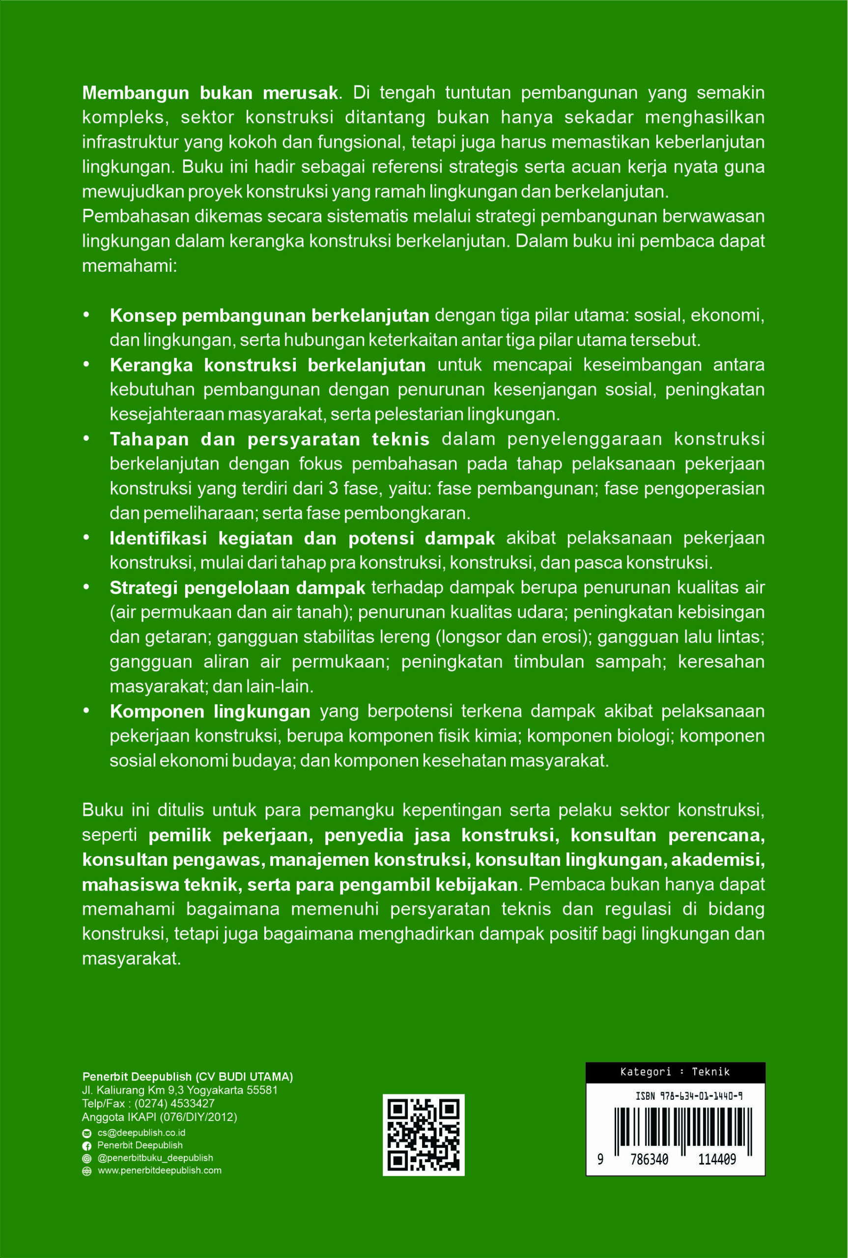 Buku Pengelolaan Lingkungan Hidup dalam Pelaksanaan Konstruksi Berkelanjutan diterbitkan oleh Penerbit Buku Pendidikan Deepublish.