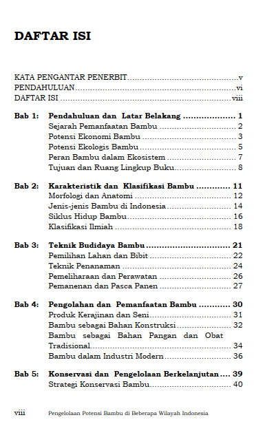 Berikut Daftar Isi Buku Kehutanan yang berjudul Buku Pengelolaan Potensi Bambu di Beberapa Wilayah Indonesia, diantaranya: