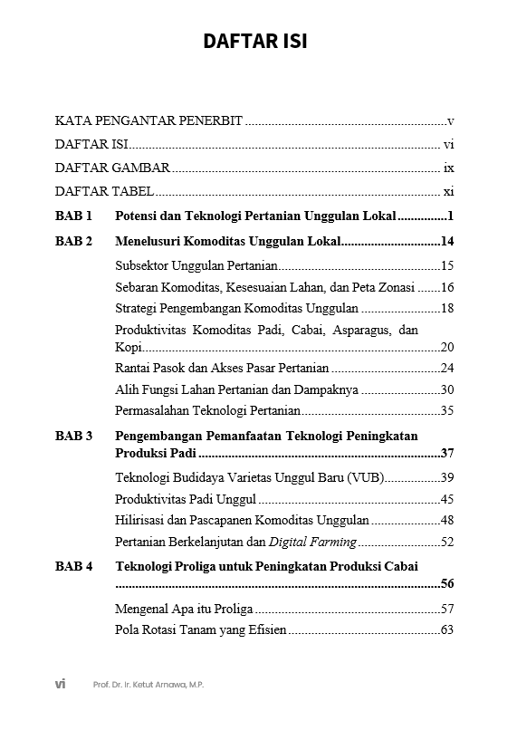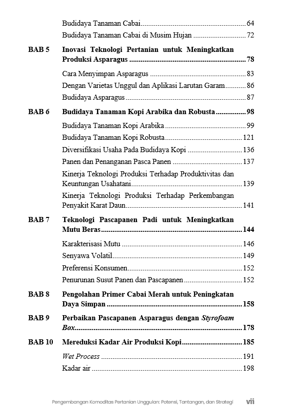 Berikut Daftar Isi Buku Pertanian yang berjudul Buku Pengembangan Komoditas Pertanian Unggulan: Potensi, Tantangan, dan Strategi, diantaranya: