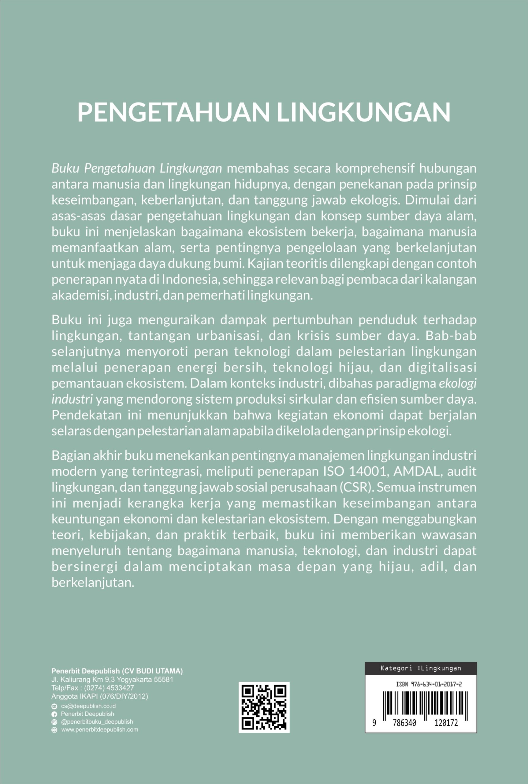 Buku Pengetahuan Lingkungan diterbitkan oleh Penerbit Buku Pendidikan Deepublish.