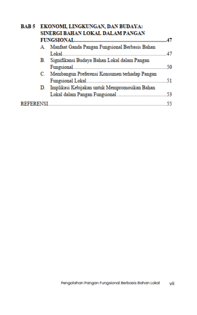Berikut Daftar Isi Buku Pertanian yang berjudul Buku Pengolahan Pangan Fungsional Berbasis Bahan Lokal, diantaranya: